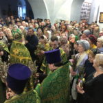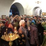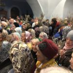 В Знаменском храме перед Вербным воскресеньем, в субботу, было совершено всенощное бдение, которое возглавил настоятель храма протоиерей Николай Яськов. На службу верующие пришли с вербными ветками в руках в честь входа Господня в Иерусалим и стояли с зажженными свечами до конца богослужения.